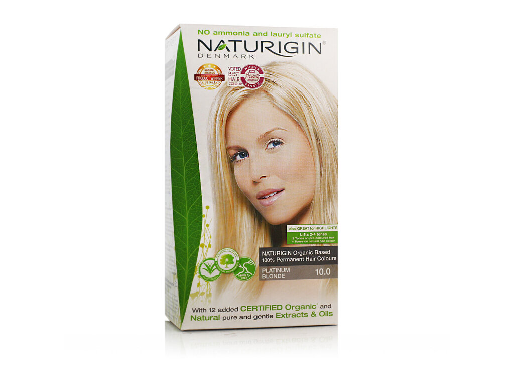 NATURIGIN Platinum Blonde 10.0NATURIGIN Platinum Blonde je permanentní přírodní barva na vlasy, která promění Vaše vlasy v nádherný velmi světlý, chladný platinový blond odstín doplněný o přirozený lesk. Efektivně kryje šediny a umožňuje zesvětlit vlasy až o 3 tóny, což ji činí ideální pro zdůraznění vaší barvy nebo její zesvětlení. S 12 přírodními ingrediencemi tato barva chrání vlasy během barvení, zároveň je vyživuje a dodává jim jedinečný lesk a jemnou vůni. NATURIGIN znamená spojení přírodní péče s perfektním krytím šedin a odrostů.