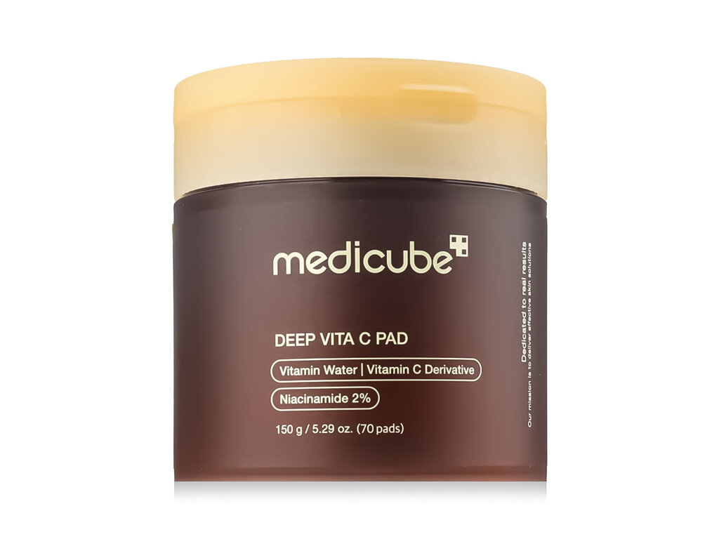 Medicube Deep Vita C Pad 70 ks je dokonalým pomocníkem pro ty, kteří chtějí dosáhnout jasné a zdravé pleti. Tyto praktické exfoliační a tonizační tamponky jsou napuštěny vysoce účinným roztokem se stabilizovaným vitamínem C, který efektivně rozjasňuje pleť, sjednocuje její tón a jemně odstraňuje odumřelé kožní buňky. Kombinují exfoliační účinek s antioxidační péčí, což zanechává pleť hladkou, svěží a projasněnou. Jsou ideální pro každodenní použití jako rychlý krok mezi čištěním a aplikací séra.