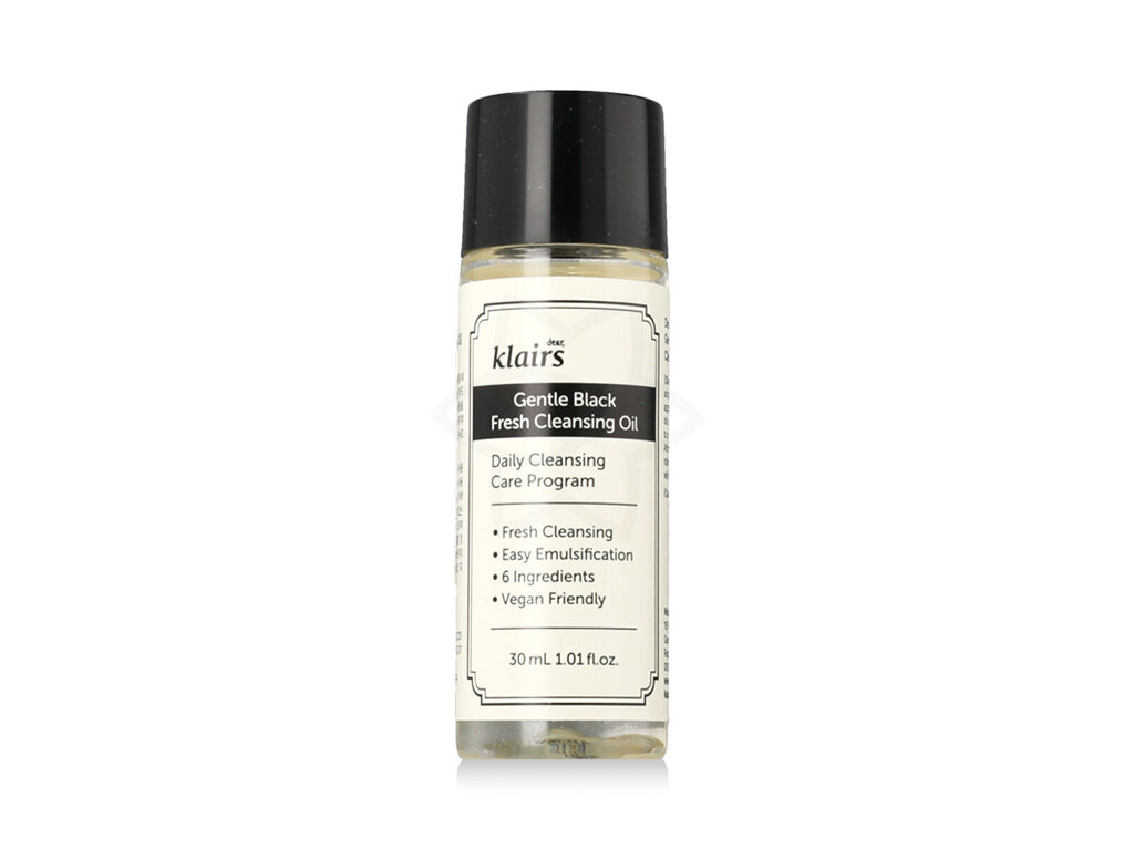 Dear, Klairs Gentle Black Fresh Cleansing Oil – odličovací a čistící olej je lehký, rostlinný olej pečlivě navržený pro šetrné, ale účinné odlíčení a každodenní čištění pleti. Díky obsahu přírodních složek, jako je jojobový a slunečnicový olej, tento výjimečný produkt efektivně rozpouští make-up, SPF i přebytečný maz, aniž by způsoboval podráždění. Praktické mini balení o objemu 30 ml se skvěle hodí na cesty nebo pro ty, kteří chtějí vyzkoušet produkt, který si získá oblibu i u majitelů citlivé nebo mastné pleti.