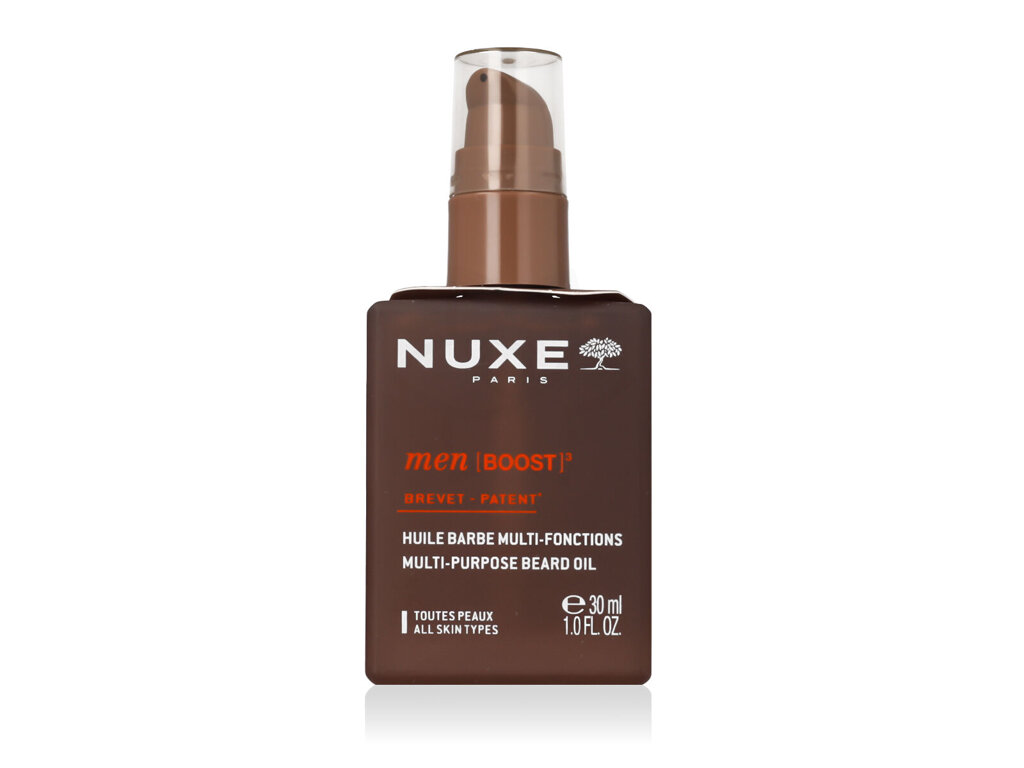 Nuxe Men Boost Multi-Purpose Beard Oil 30 ml je výživný a multifunkční olej na vousy, který kombinuje sílu přírody s precizností moderní péče. Hlavními ingrediencemi jsou 100 % přírodní rostlinné oleje, jako je arganový a slunečnicový olej. Tyto oleje spolupracují na zjemnění a výživě vousů, zatímco dodávají pokožce pod nimi potřebnou hydrataci. Jeho bohaté, ale lehké složení se rychle vstřebává a zanechává vousy lesklé a velice příjemné na dotek.