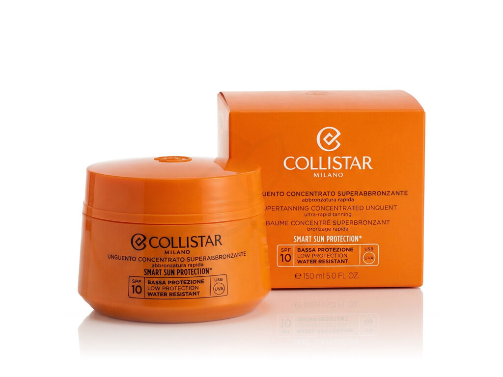 Collistar Smart Sun Protection® Supertanning Concentrate Unguent SPF 10 150 ml je exkluzivní opalovací balzám, který spojuje bohatou, výživnou texturu tradičního unguentu s inovativní technologií Smart Sun Protection®. Tento vysoce kvalitní produkt nabízí nízkou až střední ochranu před slunečním zářením, zatímco efektivně podporuje schopnost pleti získat rovnoměrné a dlouhotrvající opálení. Obsahuje aktivátory melaninu, které stimulují přirozený proces opalování, a tím zajišťují intenzivní zlatavý vzhled pleti.
