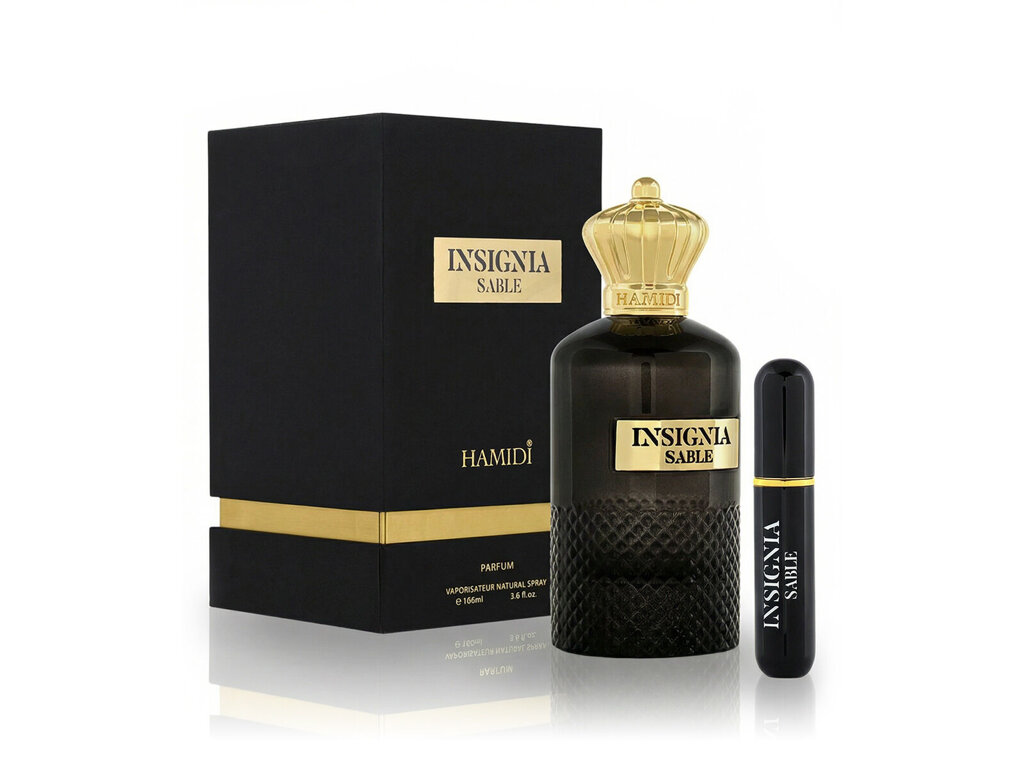 Insignia Sable by Hamidi je sofistikovaný a intenzivní parfém, který byl uveden na trh v roce 2023. Vhodný pro ženy i muže, jehož hlavní tóny kombinují kořeněnou svěžest s citrusovou jiskrou. Otevírá se pronikavým pepřem a svěžím bergamotem, což přináší energické a moderní vyzařování. Tento živý úvod okamžitě upoutá pozornost a je ideální pro ty, kteří hledají výrazné a dynamické parfémy.