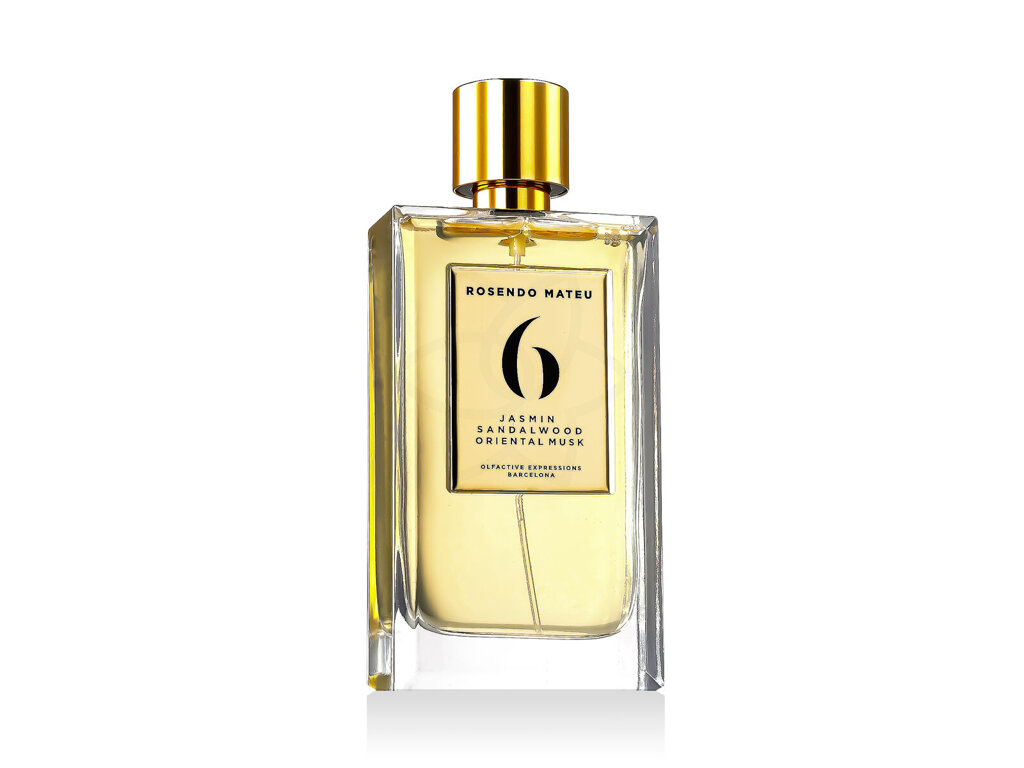 Rosendo Mateu No 6 Jasmin, Sandalwood, Oriental Musk je orientálně-květinová vůně, která byla uvedena na trh v roce 2018. Tento elegantní parfém, vytvořený mistrovským parfumérem Rosendem Mateuem, představuje harmonické spojení exotických a orientálních tónů, které vytvářejí nezapomenutelný olfaktorický zážitek. Na začátku vás okouzlí vrchní tóny, které se otevírají svěží a exotickou směsí jasmínu sambac, doplněnou o exotické plody, květinové akordy, kokos a zelené tóny. Tato kombinace přináší jasný a povzbuzující úvod, který je zároveň smyslný a tropický, čímž vás ihned vtahuje do světa luxusu a elegance.