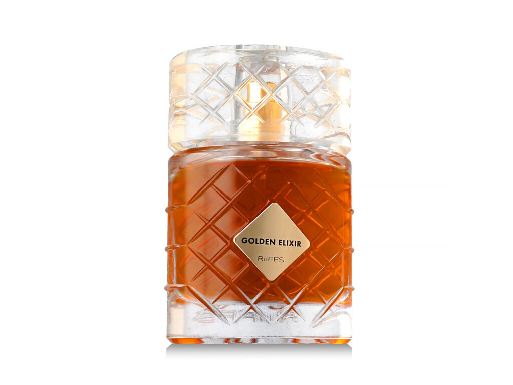 Golden Elixir by Riiffs Perfumes je dřevitě-aromatický parfém pro ženy i muže, který spatřil světlo světa v roce 2024. Tato vůně je bohatá, hřejivá a smyslná – spojuje intenzivní kořenité a ovocné tóny s gurmánskou sladkostí a temným dřevitým základem. Otevírá se výrazným a opojným akordem koňaku, doplněným kořeněnou skořicí a aromatickým muškátovým oříškem. Tento úvod vytváří dojem luxusu a smyslnosti, jako byste onemocnili pod příjemným hřejivým zábalem u praskajícího krbu.