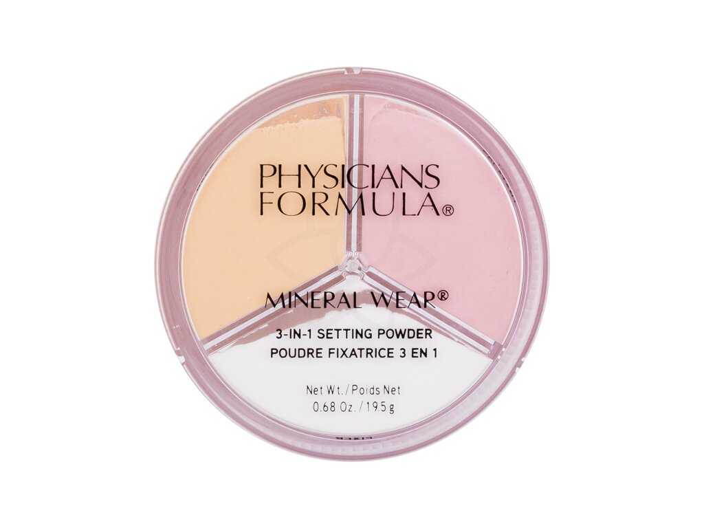 Physicians Formula Mineral Wear 3-In-1 Setting Powder je fixační a konturovací pudr, jenž se dokonale přizpůsobí tónu vaší pleti. Jeho struktura dodává pleti sametově hebký vzhled a prodlužuje výdrž make-upu. Průsvitná část slouží k zmatnění pleti, růžová k rozjasnění pleti a žluto-hnědý odstín ke konturování a osvěžení vzhledu.