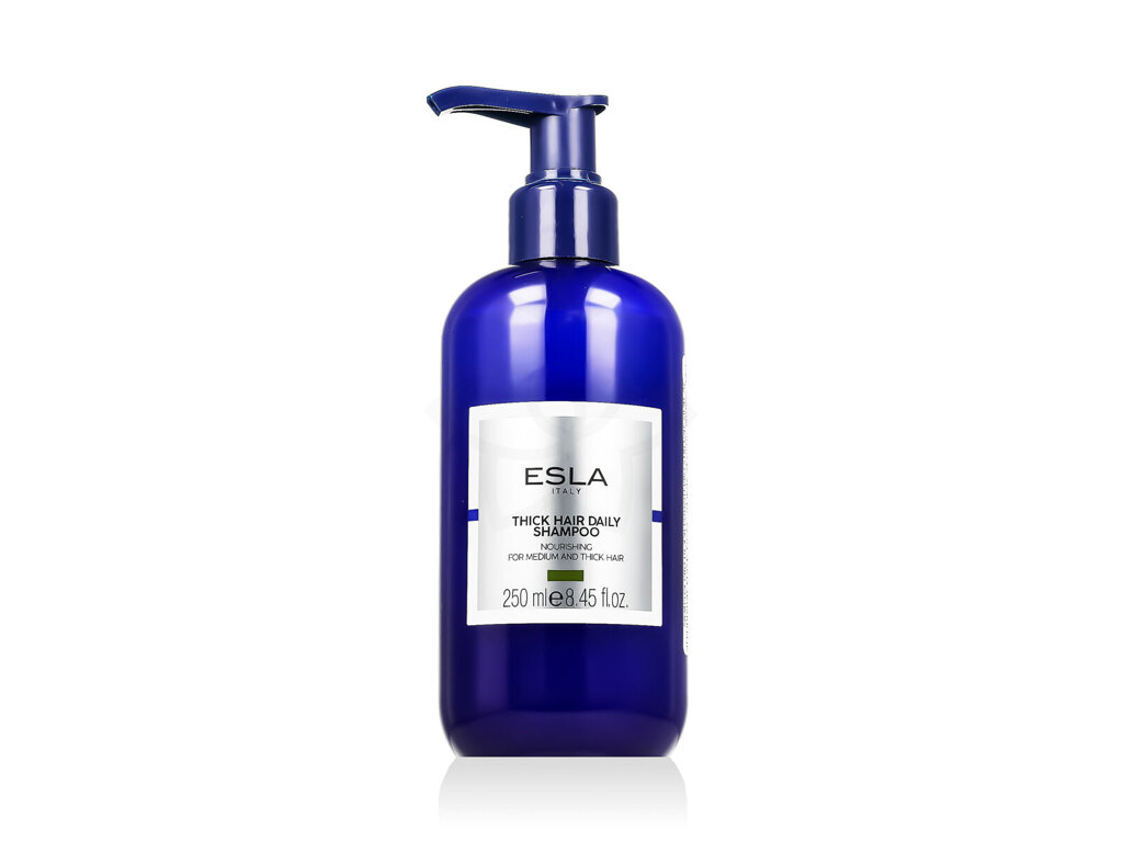 ESLA Italy Thick Hair Daily Shampoo je vyživující šampon určený pro husté vlasy, který jemně, ale důkladně čistí vlasovou pokožku a vlasy, přičemž jim dodává potřebnou hydrataci a zářivý lesk. Díky svému obohacenému složení s extraktem z hnědých mořských řas pomáhá zjemnit a uhladit strukturu hustých vlasů, aniž by je zatěžoval. Tento šampon je ideální pro každodenní použití a přispívá k celkovému zdraví vašich vlasů.