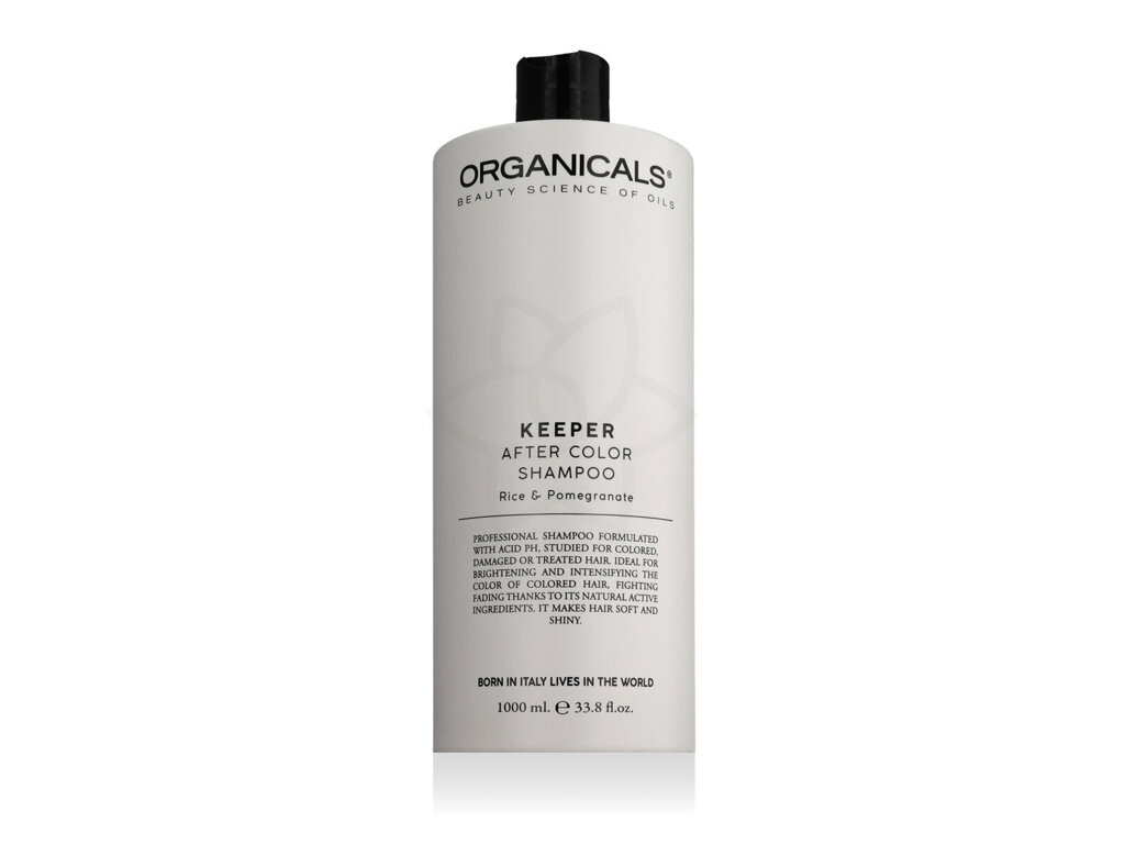Organicals® KEEPER After Color Shampoo – šampon pro barvené vlasy ve velkém 1000ml balení je navržen tak, aby poskytl důkladnou a jemnou péči o chemicky ošetřené a barvené vlasy. Obsahuje bohatou kompozici přírodních výtažků a hydratačních složek, které se starají o vlasy a vlasovou pokožku. Hlavními složkami jsou výtažky z aloe vera a mandlového oleje, které jsou známy pro své zklidňující a vyživující vlastnosti, a pomáhají zachovat intenzitu barvy.