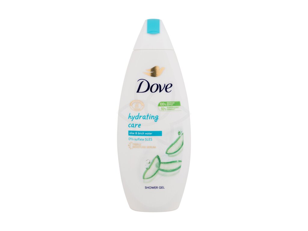Dove Hydrating Care je revoluční sprchový gel, který přináší lehkou hydrataci a osvěžující péči, kterou vaše pokožka potřebuje. Tento sprchový gel je obohacený o aloe vera a březovou vodu, které pomáhají osvěžit a povzbudit vaši pokožku i smysly již po prvním použití.